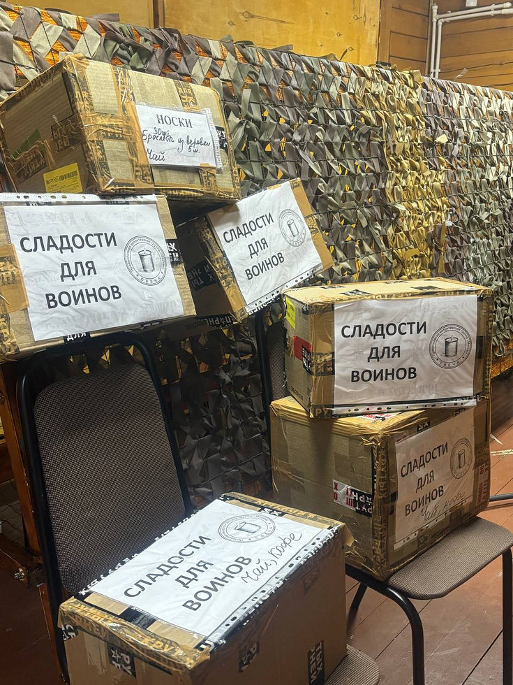 Кроме того в зону СВО было отправлено 18 коробок с продуктами питания, в том числе чай, кофе и сладости.