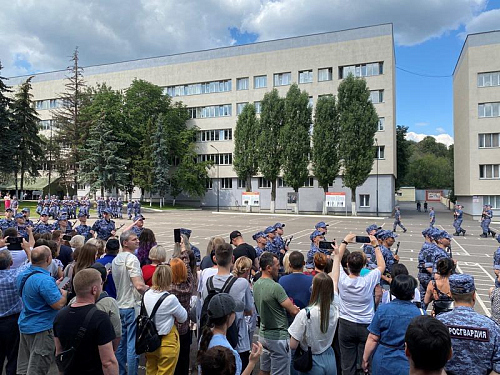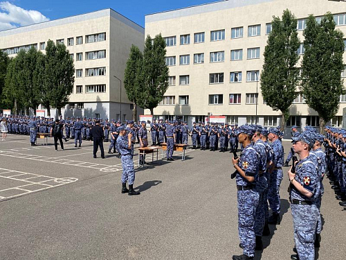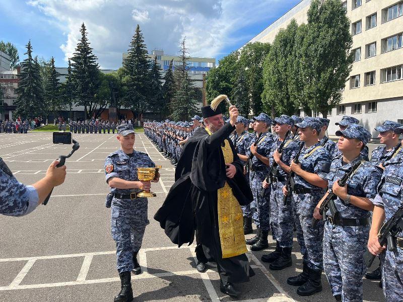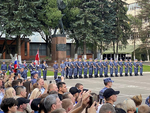 Были внесены знамя России и полка Росгвардии, прозвучал Гимн России.