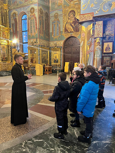 24 декабря 2024 года в рамках сотрудничества храма с государственными общеобразовательными учреждениями иерей Сергий Вязьмин провел экскурсию по храму для учеников ГБОУ Школы № 626 имени Н.И. Сац.