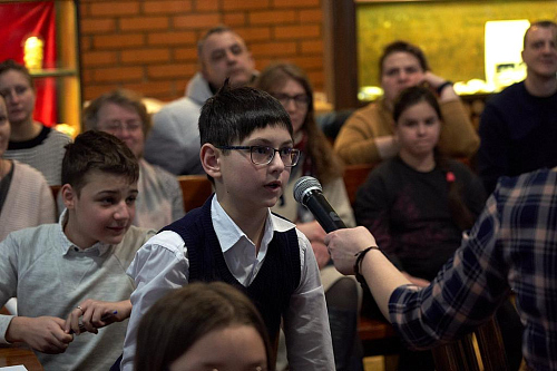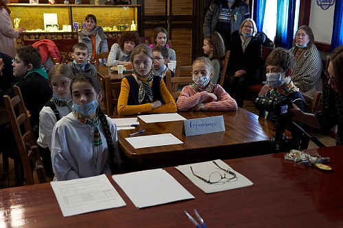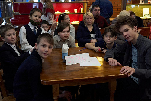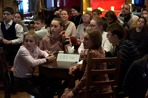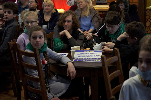 Викторина проходила в уютной трапезной храма Живоначальной Троицы в Старых Черёмушках. Организаторы викторины – ответственный за деятельность воскресных школ Юго-Западного викариатства иерей Александр Мелин и директор Воскресной школы храма Живоначальной Троицы в Старых Черёмушках Гришакова Светлана Ивановна.