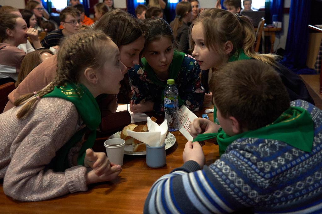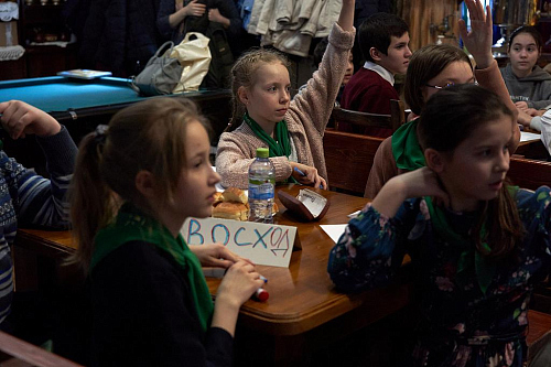 10 Воскресных школ объявили о готовности участвовать в игре и собрали команды из пяти учащихся 11-15 лет. Игра проходила в два тура, в каждом из которых участвовало по 5 команд.