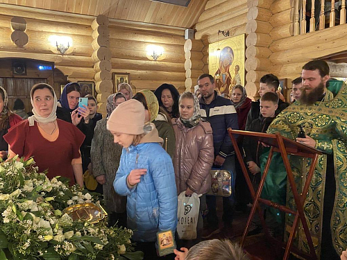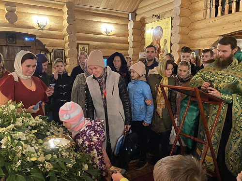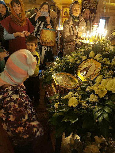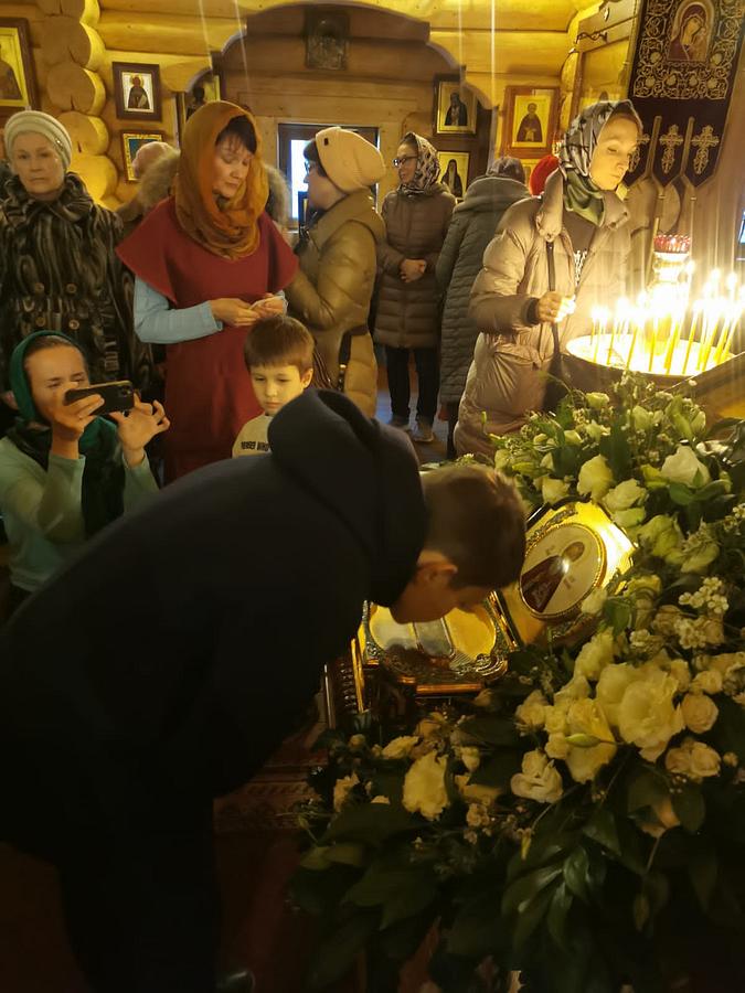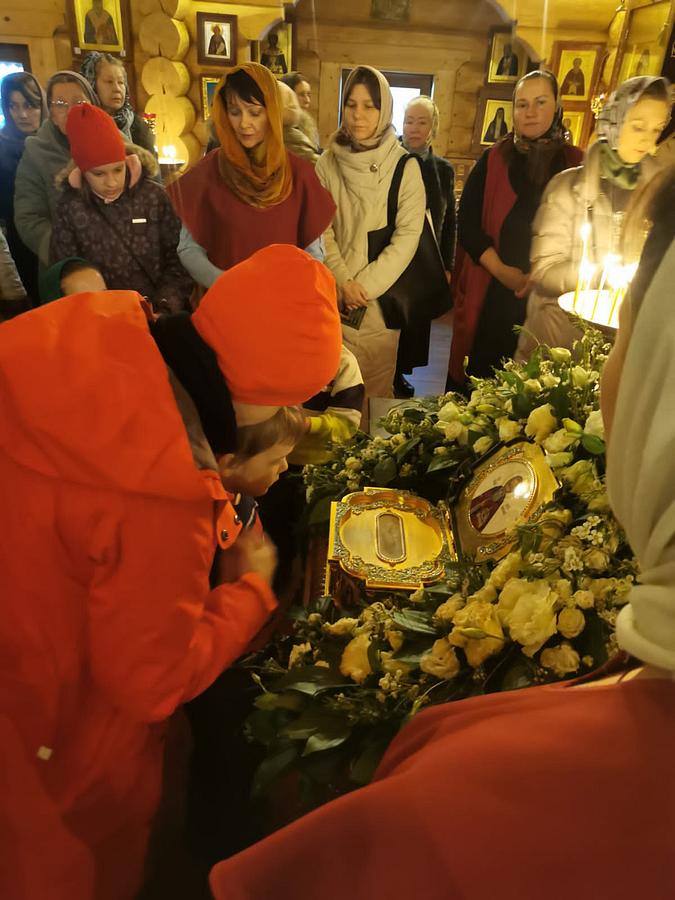 Затем все молящиеся приложились к мощам преподобного Сергия и получили в подарок иконки с патриаршим благословением.
