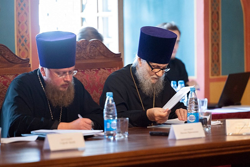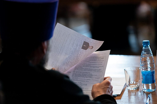 В ходе заседания состоялось промежуточное рассмотрение проектов документов «Практика служения иногородних клириков на территории г. Москвы» и «Инструктивные указания при ходатайстве управляющих викариатствами о принятии священнослужителей в клир г. Москвы».