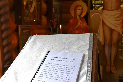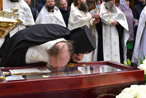 По окончании заупокойного Богослужения епископ Феофилакт огласил соболезнование Святейшего Патриарха Московского и всея Руси Кирилла: