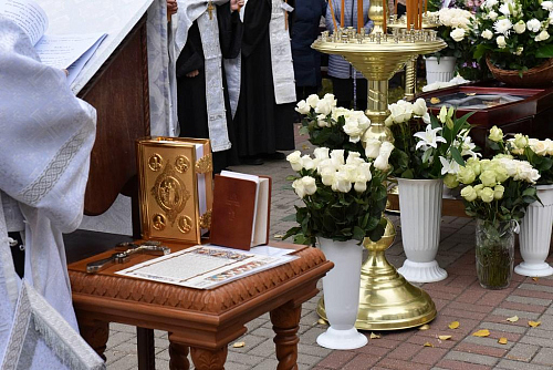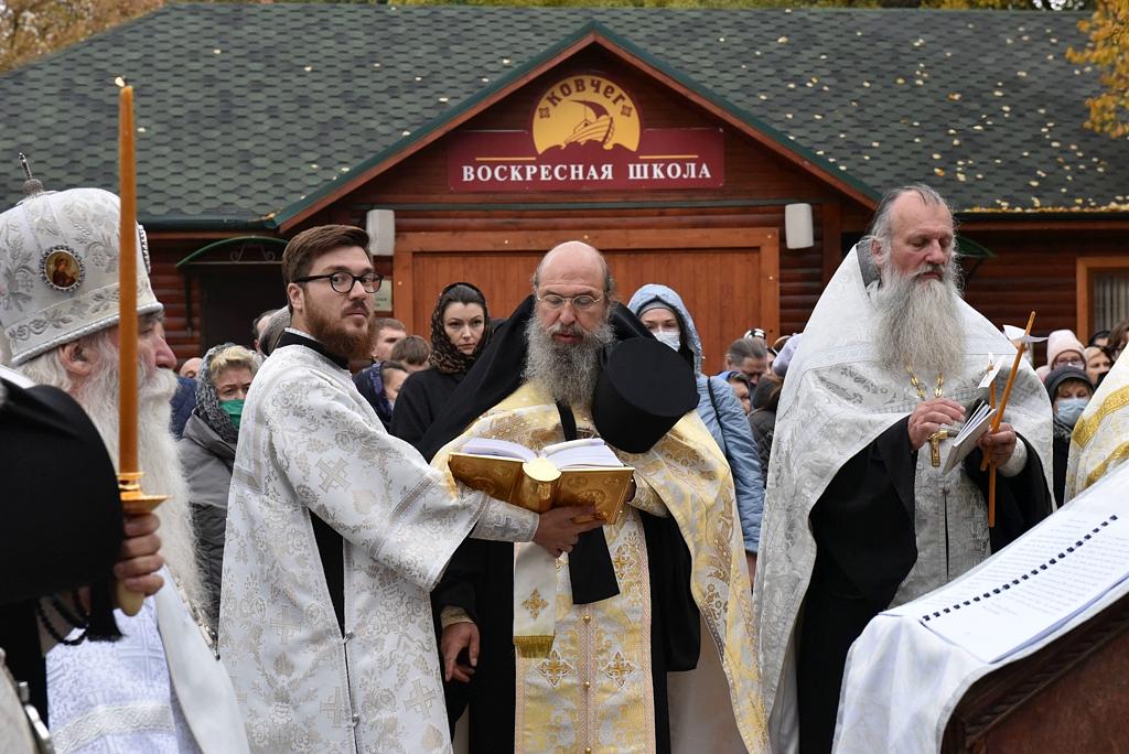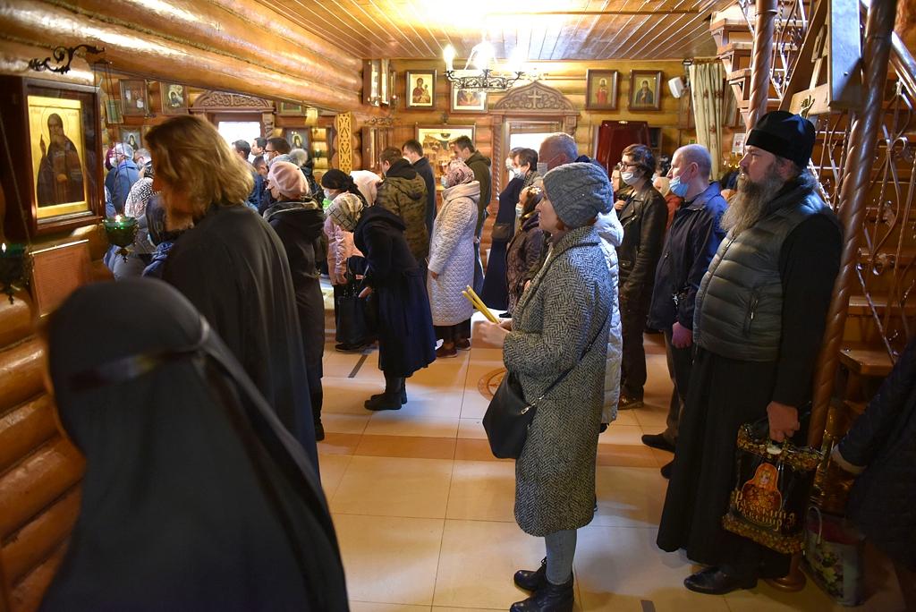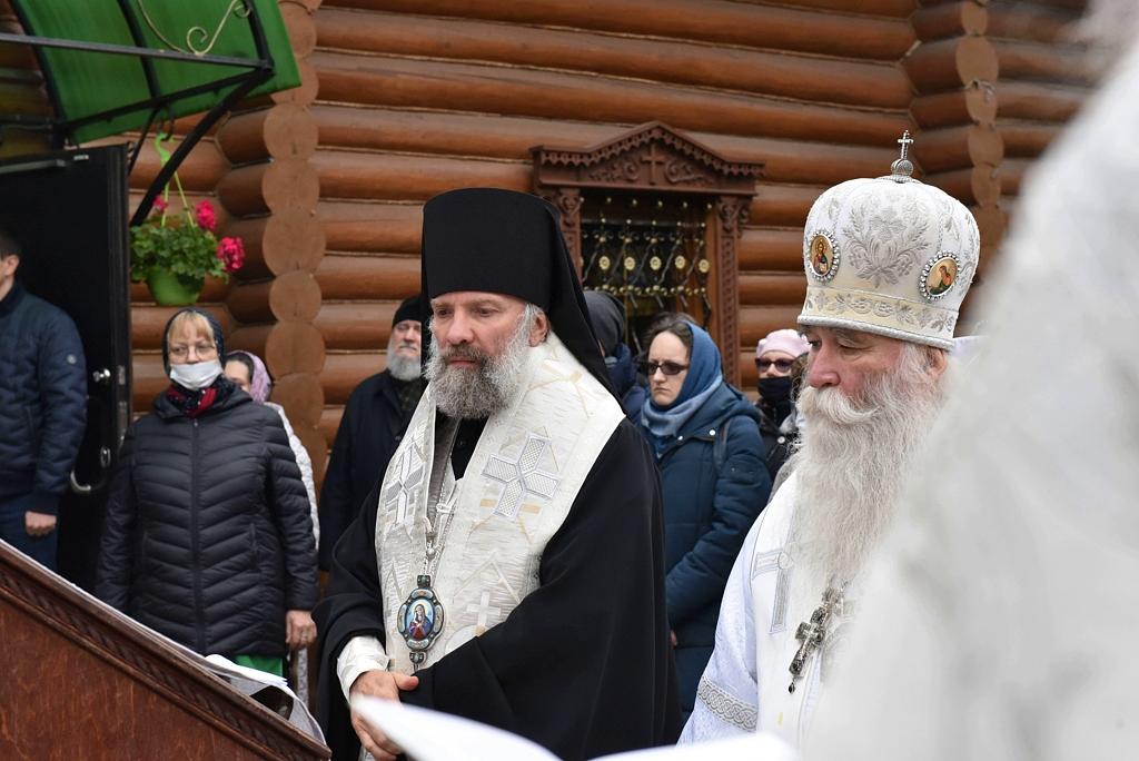 Его Преосвященству сослужили: епископ Скопинский и Шацкий Питирим; протоиерей Николай Карасев, благочинный Андреевского церковного округа, настоятель храма Живоначальной Троицы в Старых Черемушках; архимандрит Мелхиседек (Артюхин), настоятель храмов святых первоверховных апостолов Петра и Павла и Покрова Пресвятой Богородицы в Ясеневе; протоиерей Владимир Соколов, духовник Юго-Западного викариатства, клирик храма Живоначальной Троицы в Старых Черемушках; протоиерей Владимир Быстрый, и.о.настоятеля храма святых равноапостольных князя Владимира и княгини Ольги в Черемушках; протоиерей Алексий Давиденко, клирик храма Вознесения Господня «Малое Вознесение» г. Москвы; иерей Антоний Фукс, клирик храма Всех преподобных отцев Киево-Печерских в Старых Черемушках; иеромонах Феодор (Юлаев), клирик Покровского академического храма МДАиС; иерей Сергий Сулин, настоятель храма святых равноапостольных царя Константина и царицы Елены в Митино; иеромонах Мелитон (Присада), настоятель храма преподобного Сергия Радонежского пос. Долматовский Кинешемской епархии Ивановской митрополии; иерей Александр Мелин, настоятель храма иконы Божией Матери "Отрада и Утешение" на Каховке; иерей Сергий Плужников, клирик храма святителя Николая Мирликийского с. Архипо-Осиповка Новороссийской епархии Кубанской митрополии; иерей Иоанн Омелянчук, настоятель храма Священномученика Ермогена, Патриарха Московского и всея Руси, в Зюзине; иерей Николай Алешин, настоятель храма иконы Божией Матери "Умягчение злых сердец" в Конькове; иерей Алексий Ладченков, клирик храма Живоначальной Троицы в Старых Черемушках; иерей Дионисий Хропот, настоятель храма Рождества Христова дер. Рождествено, Сергиево-Посадской епархии Московской митрополии; диакон Антоний Камальдинов, клирик храма Преподобной Евфросинии, великой княгини Московской, в Котловке; диакон Александр Пышненко, клирик Патриаршего подворья в честь великомученицы Варвары пос. Власиха Московской области.