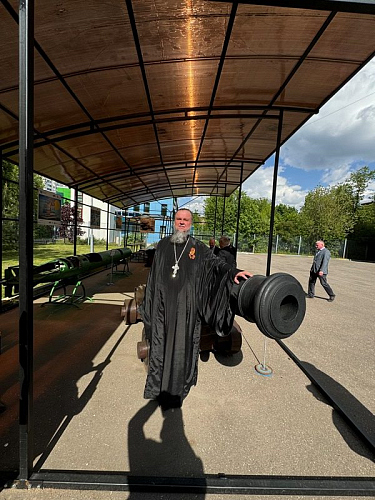 Со словом приветствия выступил настоятель храма святого праведного воина Феодора Ушакова в Южном Бутове игумен Дамиан (Залетов), почетных житель района Южное Бутово, член Штаба Юнармии ЮЗАО г. Москвы.