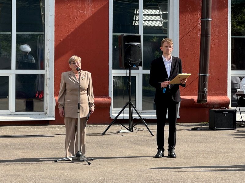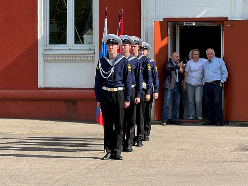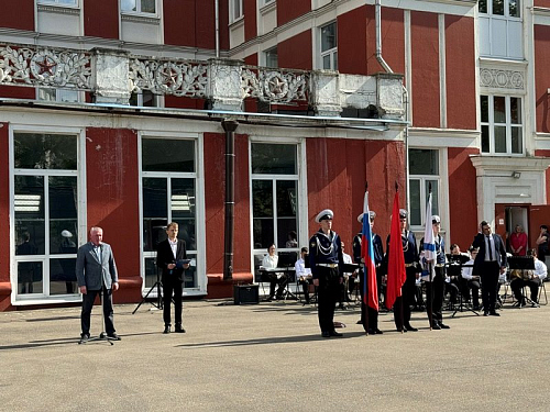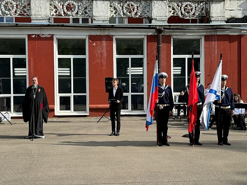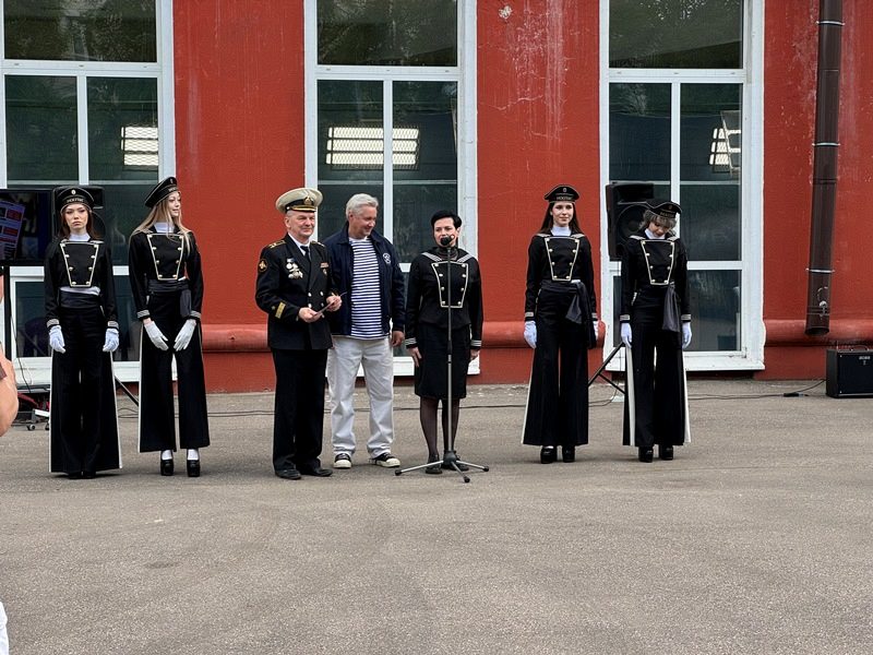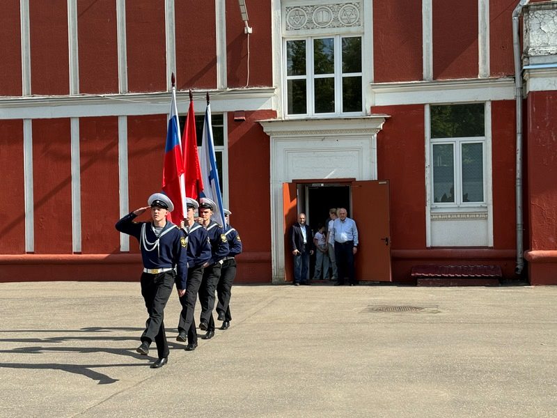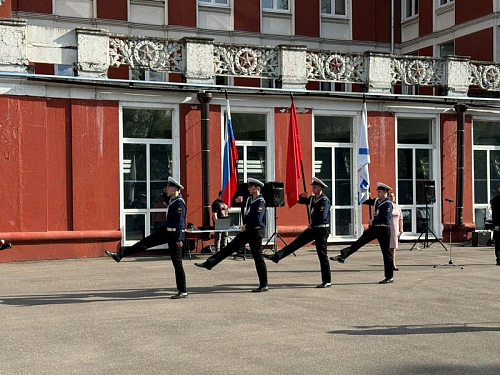 Торжественное построение началось с выноса знамен Российской Федерации, города Москвы и Андреевского флага. Знаменная группа состояла из курсантов колледжа Академии водного транспорта РУТ (МИИТ) им. министра речного флота Л.В. Багрова. Прозвучал Государственный гимн. Большая группа курсантов колледжа АВТ, во главе с начальником колледжа Ивановым Владимиром Ивановичем и Доломан Еленой Владимировной, присутствовала на празднике. Курсанты частые гости Музея и участники его мероприятий.