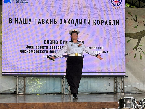 Далее со словом приветствия выступила первый руководитель Музея Черноморского флота, отличник народного образования, почетный работник образования города Москвы, ветеран педагогического труда Курникова Валерия Викторовна.