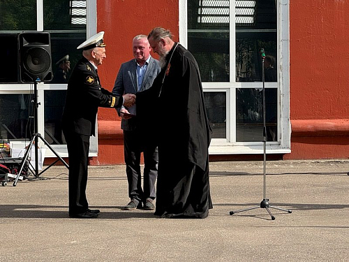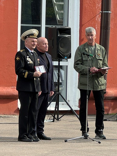 Со словом поздравления выступил председатель Совета ветеранов Краснознаменного Черноморского флота, капитан 1-го ранга Егоров Анатолий Леонтьевич.