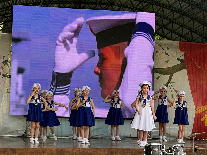 Концертная программа включила в себя различные музыкальные номера: танцевальные, хоровые, сольные. С огромным энтузиазмом дети показывали свое творчество ветеранам флота, гостям и жителям района. Зрителя также с радостью и благодарностью смотрели на артистов, участвую своими аплодисментами или подпевая знакомым любимым мотивам.