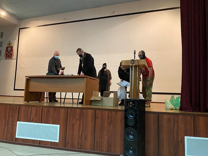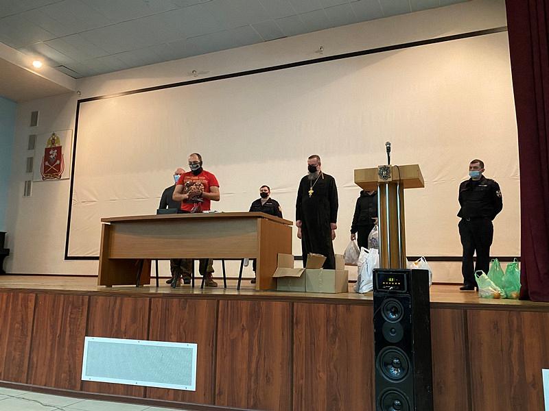 Вместе с продуктовыми наборами настоятель вручал каждому воину экземпляр Нового Завета и икону святителя Николая.