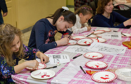 Перед началом фестиваля в фойе школы вниманию гостей была представлена выставка достижений Воскресных школ храмов Юго-Западного викариатства.Также гости и участники фестиваля могли принять участие в мастер-классах, которые были подготовлены некоторыми храмами. Участники творческих мастер-классов смогли унести с собой памятные поделки, сделанные своими руками.