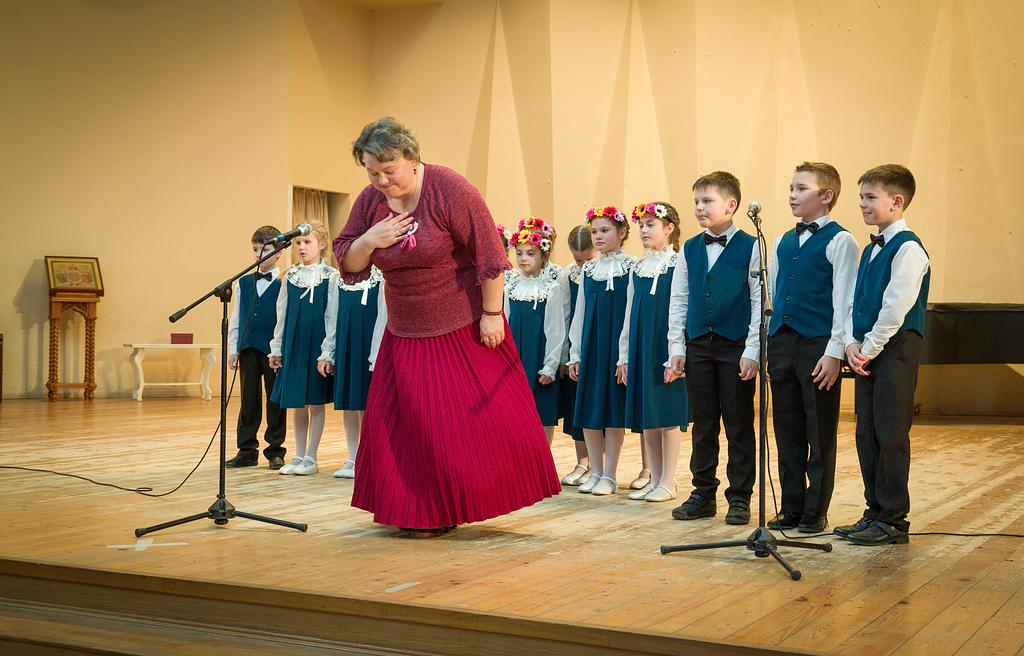 Открыл концертную программу хор Воскресной школы при храме святой Анастасии Узорешительницы в Теплом Стане с Пасхальными песнями.