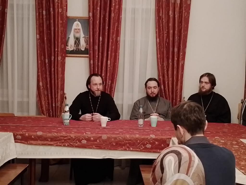 Перед собравшимися выступил кандидат философских наук, преподаватель Московской духовной академии иеромонах Симеон (Мазаев) с лекцией на тему «Логика христианства». Лекция была посвящена методам современной апологетики. Спикер рассказал участникам встречи, как следует вести диалог с нецерковной или околоцерковной аудиторией, отвечая на такие вопросы собеседника, как: «Почему мы умираем? В чем смысл смерти?», «Что сделал для человечества Христос, чем Он отличается от просто хорошего человека?», «В чем смысл «странного» таинства Причастия, почему христиане едят Бога?».
