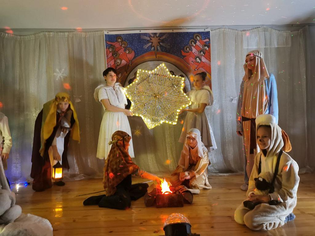 Темой спектакля стало Рождение Христа. Маленькие волхвы и пастухи с радостью принесли в дар Господу все свои таланты, рассказав красивые Рождественские стихи и исполнив музыкальные этюды. На праздник были приглашены педагоги Воскресной школы, прихожане храма и посетители библиотеки.