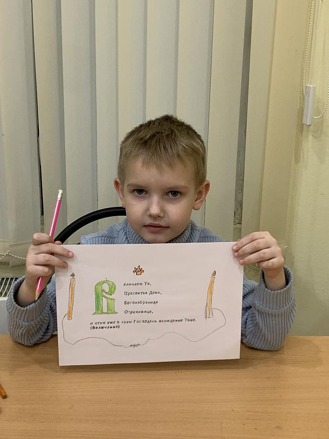 Дети вспомнили историю праздника, когда праведные Иоаким и Анна исполнили обет посвятить свою дочь Марию Богу и привели Ее в Иерусалимский храм.