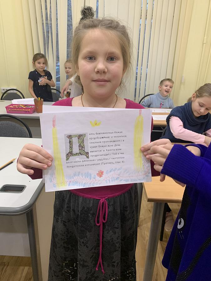 Эту историю они и проиллюстрировали в открытке-аппликации, изготовленной своими руками. Также учащиеся ознакомились с богослужебными текстами праздника.