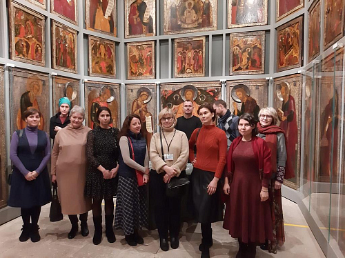 Участники встречи прошли по залам, где хранятся шедевры русской иконописи, рассмотрели иконографию редчайших образцов русской духовной живописи, историю их написания, особенности применения принципа обратной перспективы в иконе, познакомились с биографиями и важнейшими этапами духовного и творческого возрастания известных иконописцев. Образы Спасителя, Богородицы, святых угодников Божиих, выписанные руками талантливых мастеров, стали духовно ближе, а информация и символика древней иконы, запечатленная на старинных досках, объемнее и понятнее.