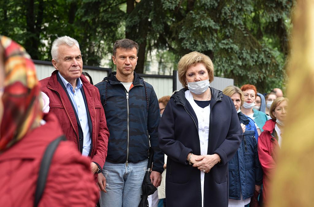 На Богослужении присутствовали Главный врач больницы, профессор, д.м.н., депутат Московской городской Думы Ольга Викторовна Шарапова, генеральный подрядчик Вадим Гатауллин, руководитель ООО «ГенСтройТрест», сотрудники и пациенты больницы, строители и прихожане храма.