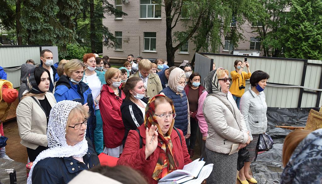 11 июня 2021 года, в день памяти Святителя Луки (Войно-Ясенецкого), архиепископа Симферопольского и Крымского, протоиерей Николай Карасев, благочинный Андреевского церковного округа, настоятель храма Живоначальной Троицы в Старых Черемушках совершил на территории ГБУЗ "ГКБ им. В.В.Виноградова ДЗМ" молебен о помощи в возведении дома Божьего, строителях, благотворителях и жертвователях будущего храма.