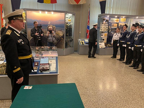 Перед курсантами выступил член Правления Общероссийского Движения поддержки флота, капитан 1 ранга, Толузаков Геннадий Петрович.
