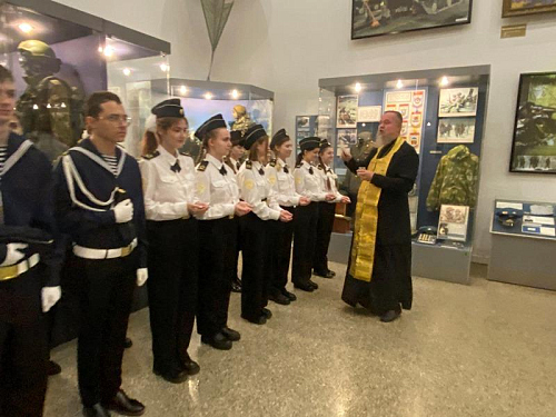 Курсантов АВТ благословил и окропил Святой водой настоятель храма святителя Николая в Тушине, Духовный Центр моряков и речников России, иерей Олег Яньшин.