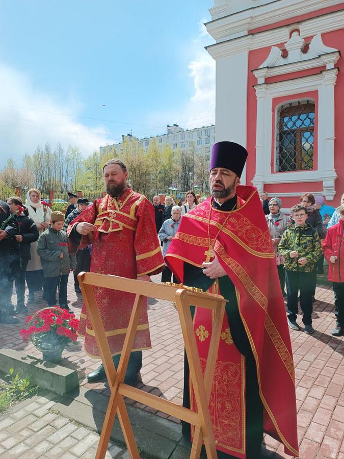 Почтить память павших земляков пришли члены Совета ветеранов округа Коньково, сотрудники Управы Коньково, представители Общества инвалидов района, прихожане храма, учащиеся и преподаватели средней общеобразовательной школы № 113.