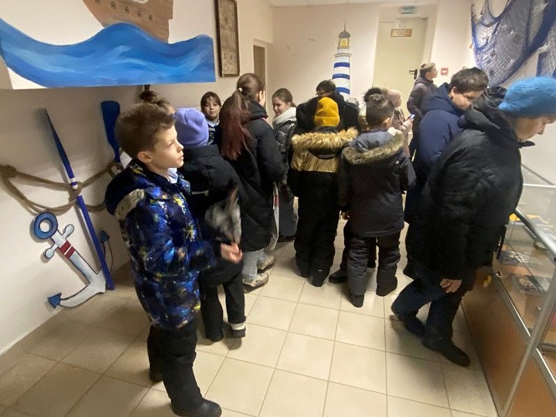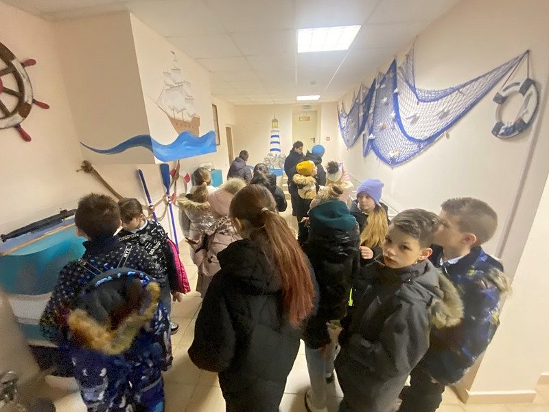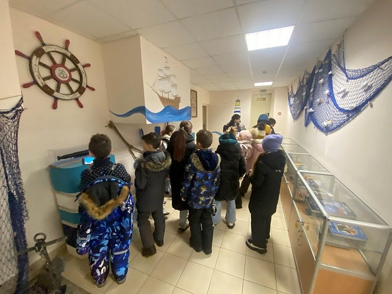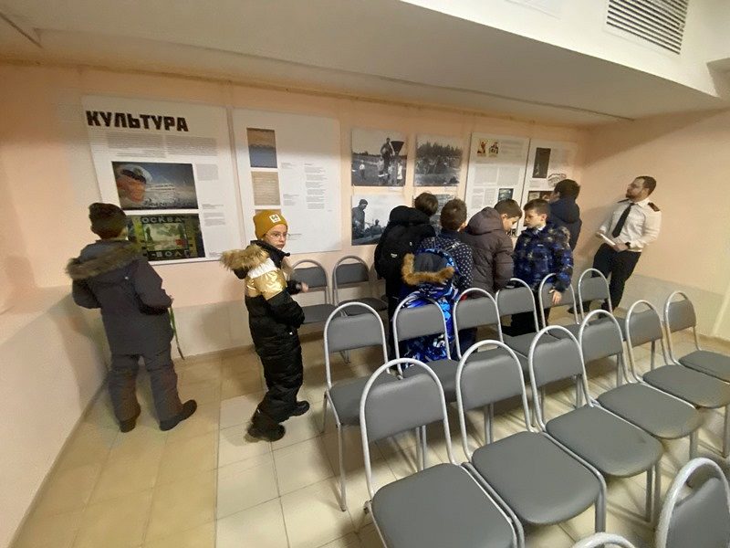 Ребята также смогли осмотреть выставку ФБУ «Музей морского флота». Выставка называется «Штурмуем великий план!» к 85-летию Канала имени Москвы. Выставка организована Музеем морского флота и ФГБУ «Канал имени Москвы» при поддержке Департамента транспорта и развития дорожно-транспортной инфраструктуры города Москвы. О выставке школьникам рассказал сотрудник Музеем морского флота.