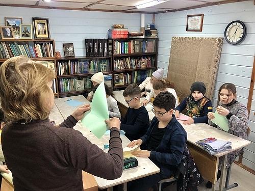 Экскурсию и мастер-класс провели педагоги Воскресной школы Наталья Александровна Астахова и Светлана Юрьевна Ратинова.