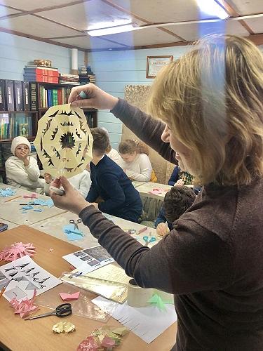 После экскурсии педагогом Светланой Юрьевной был проведён для школьников мастер-класс. Дети и даже взрослые с удовольствием и вдохновением созидали свои поделки. Все они получились совершенно разные по цветовым сочетаниям, композиции и технике. Цель мастер класса - это сплочение учащихся, приобщение к совместному творчеству и развитие фантазии.