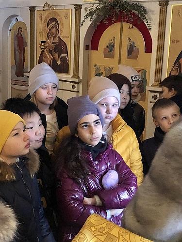 Наталья Александровна рассказала ребятам об истории храма, об его устройстве и значении, о правилах поведения в храме, поведала краткое житие святого покровителя храма священномученика Василия, протоиерея Московского, а также житие других мучеников и чудотворцев. Педагог ответила на все многочисленные вопросы детей. Затем ребята поставили свечи с молитвой и просьбой о своих нуждах.