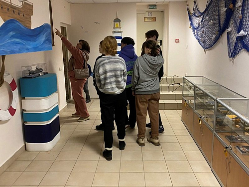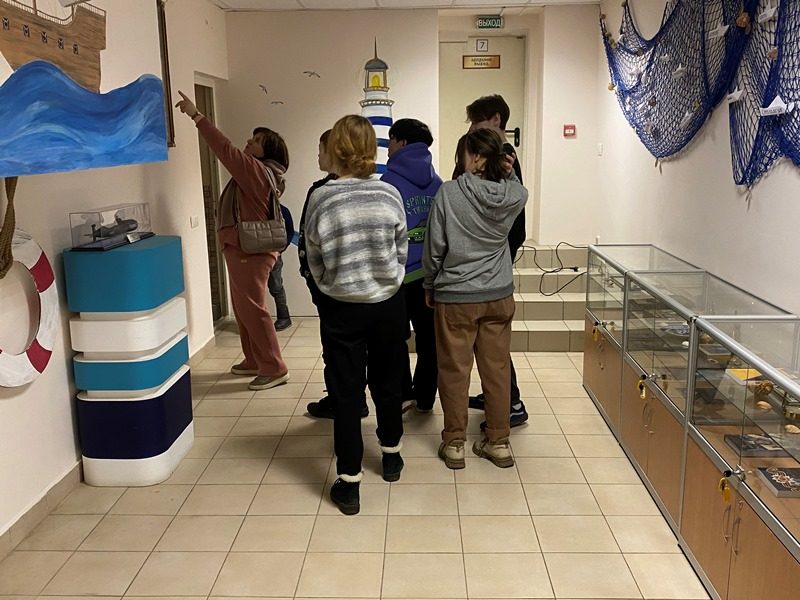 Ребята также смогли осмотреть выставку ФБУ «Музей морского флота». Выставка называется «Штурмуем великий план!» к 85-летию Канала имени Москвы. Выставка организована Музеем морского флота и ФГБУ «Канал имени Москвы» при поддержке Департамента транспорта и развития дорожно-транспортной инфраструктуры города Москвы. О выставке школьникам рассказал сотрудник Музеем морского флота.