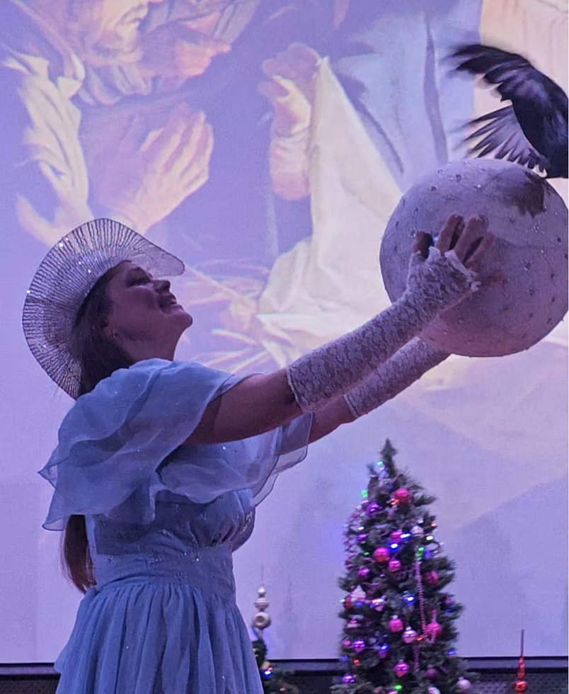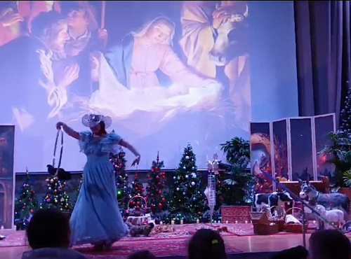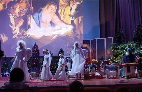 Затем на сцене оказались лежащие возле костра пастухи, а над ними кружили светлые ангелы, из дальней страны приходили важные Волхвы. Таинственная атмосфера Рождественской ночи окутала зрительный зал. И вдруг неожиданно для всех на сцене появились живые голуби!