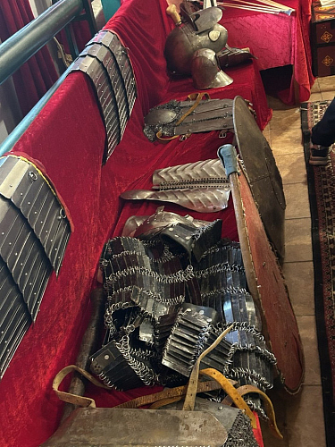 Все присутствующие могли подержать в руках и рассмотреть экспонаты музея - раритетные, старинные оружия: мечи, копья, топоры и луки.