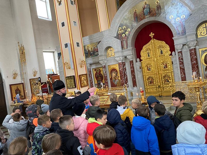 Эта познавательная экскурсия прошла в рамках изучения ребятами Основ Православной культуры. Она стала реальным свидетельством многолетнего сотрудничества Храма и Школы, нашедшее свое отражение в соглашении о сотрудничестве, которое было подписано 5 августа 2021 года - в рамках празднования 20-летия канонизации святого праведного воина Феодора.