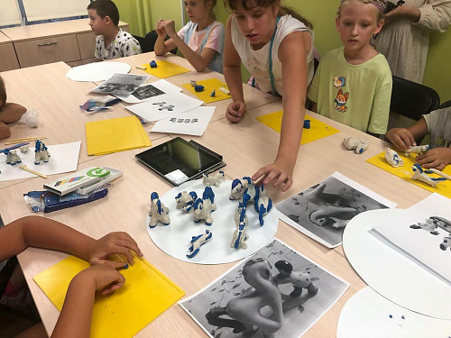 В ходе занятия ребята познакомились с русским народным промыслом в технике гжель, отличительным признаком которого является бело-голубая керамика.