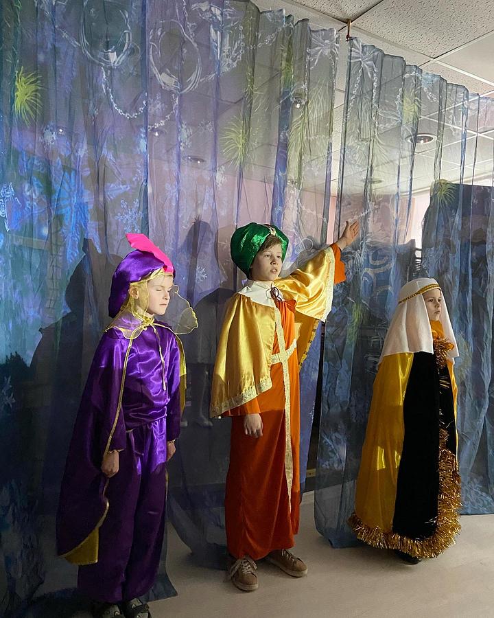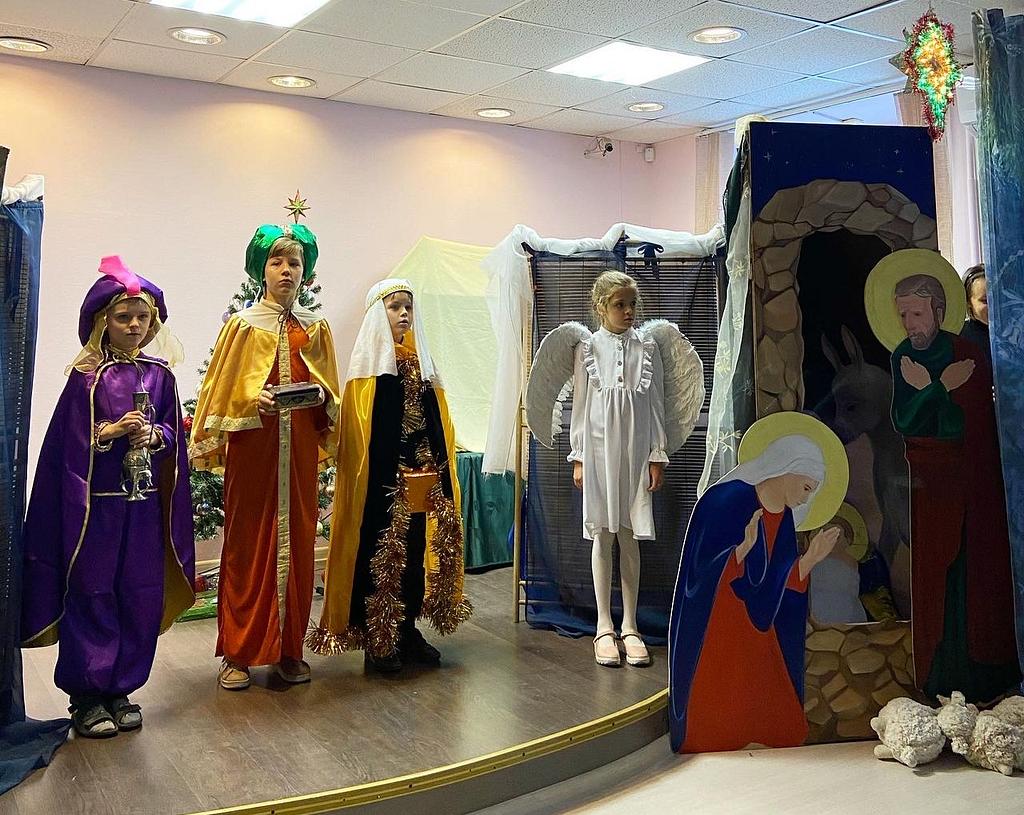 Учащиеся подготовили спектакль, сценарий которого традиционно ежегодно пишется для детей нашего храма певчей и ответственной за молодёжное служение на приходе Марией Шуваловой. Сказочные истории каждый год разные, и они настолько интересные, что дети просят родителей читать их им на ночь.
