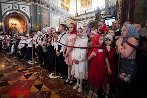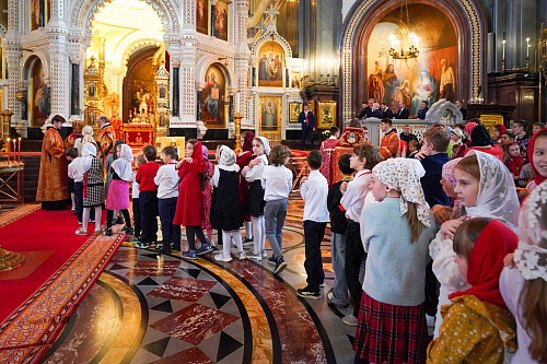 Святейший Патриарх Московский и всея Руси Кирилл совершил Божественную литургию, в которой в качестве молящихся, поющих и прислуживающих в алтаре участвовали дети отроческого возраста. Особая «детская» Патриаршая Литургия состоялась уже в восьмой раз.