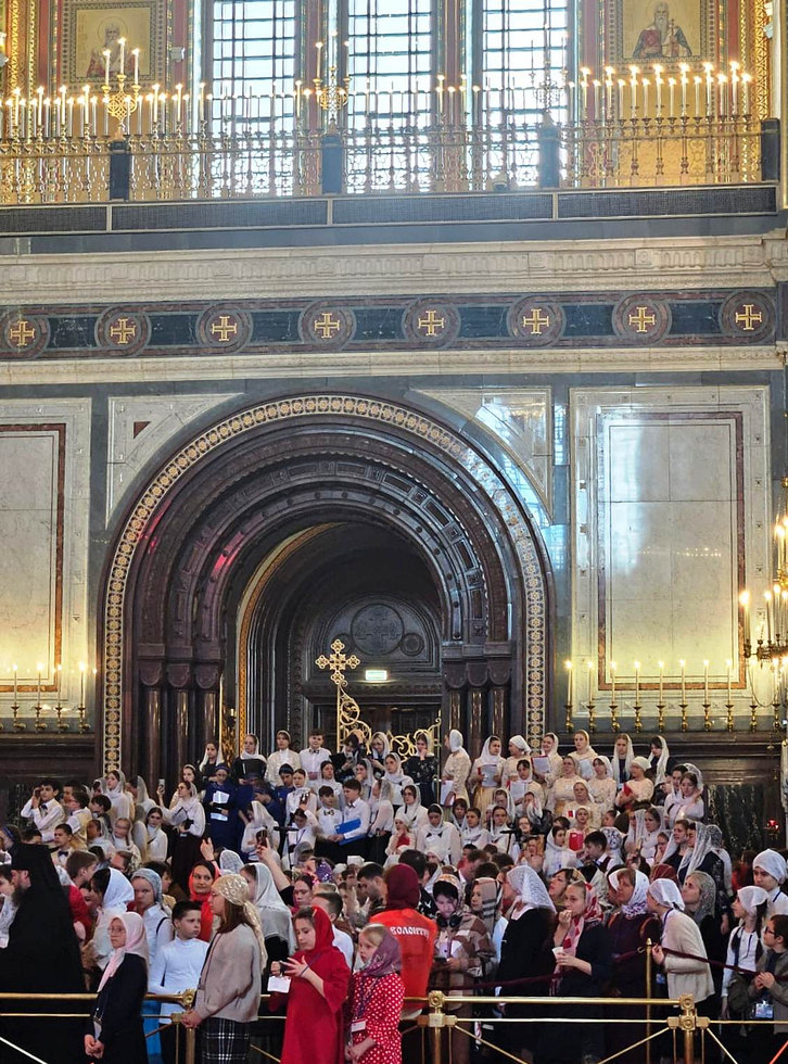 27 апреля 2025 года воспитанники и выпускники Воскресной школы "Иверский Исток" Храма Иверской иконы Божией Матери в Беляеве под руководством заместителя директора Воскресной школы Анастасии Романовны Пресс приняли участие в «детской» Патриаршей Литургии, которая состоялась в кафедральном соборном Храме Христа Спасителя г. Москвы.