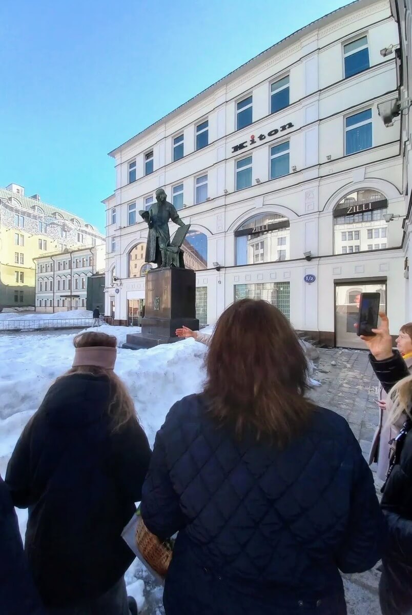 Московский экскурсовод Елена очень интересно и увлекательно рассказала собравшимся об истории Богоявленского монастыря и памятнике братьям Лихудам, Заиконоспасском монастыре, показала здание Синодальной типографии, где ранее располагался Московский печатный двор.