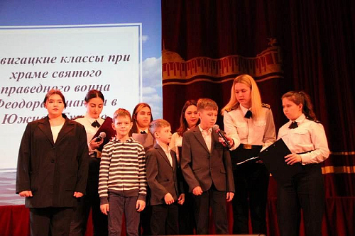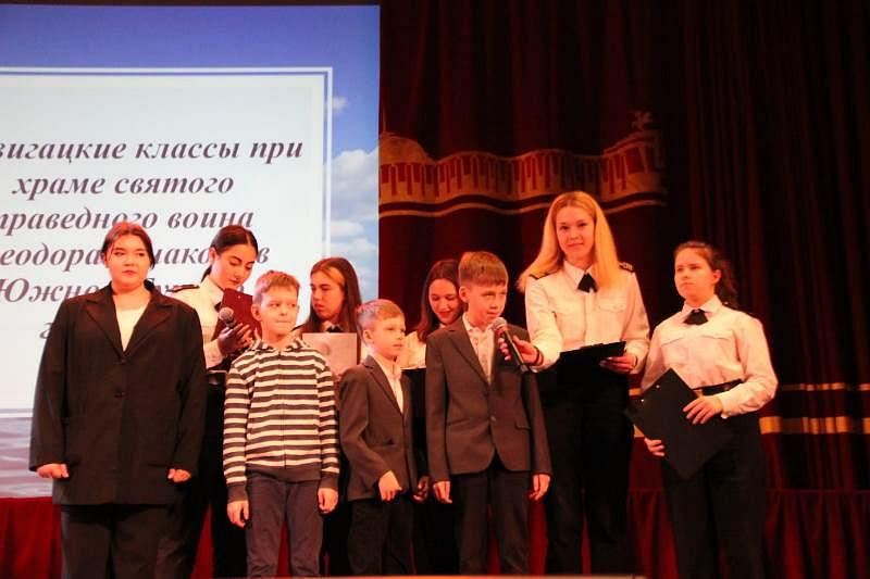 По благословению настоятеля храма святого праведного воина Феодора Ушакова в Южном Бутове игумена Дамиана (Залетова) в Межконфессиональном патриотическом клубе приняли участие учащиеся Воскресной школы и Навигацкого класса Патриаршего подворья с преподавателем колледжа Академии водного транспорта РУТ (МИИТ) Шевченко Татьяной Семеновной.