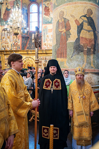 2 марта 2025 года, в Неделю сыропустную, воспоминание Адамова изгнания (Прощеное воскресенье), день памяти священномученика Ермогена, Патриарха Московского и всея Руси, чудотворца, Святейший Патриарх Московский и всея Руси Кирилл совершил Божественную литургию в Патриаршем Успенском соборе Московского Кремля, где почивают мощи святителя Ермогена. Предстоятелю Русской Православной Церкви среди собора архиереев сослужил управляющий Юго-Западным викариатством, епископ Раменский Алексий, личный секретарь Святейшего Патриарха Кирилла