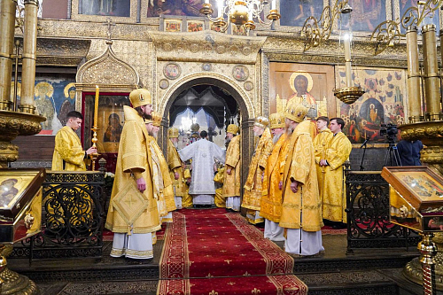 На сугубой ектении были вознесены особые прошения, Предстоятель Русской Православной Церкви прочитал молитву о Святой Руси.