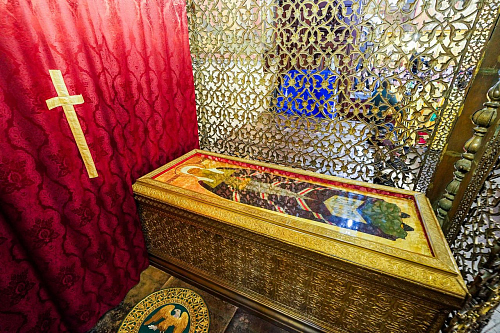 Святейший Патриарх Кирилл совершил славление и молитву у раки с мощами святителя Ермогена.