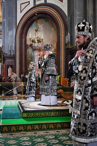Затем Предстоятель Русской Православной Церкви совершил первую в этом году Литургию Преждеосвященных Даров.