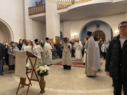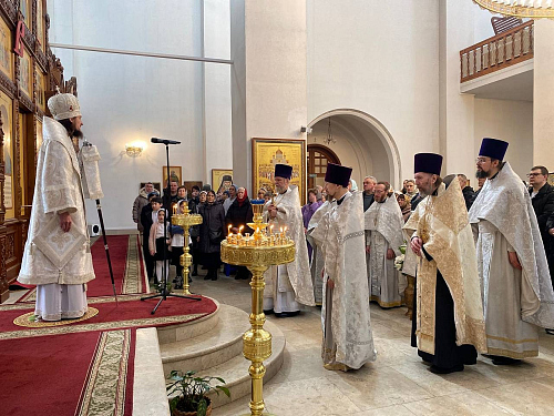 На сугубой ектении были вознесены особые прошения, Преосвященнейший Владыка прочитал молитву о Святой Руси.