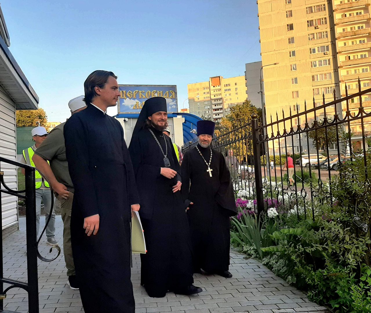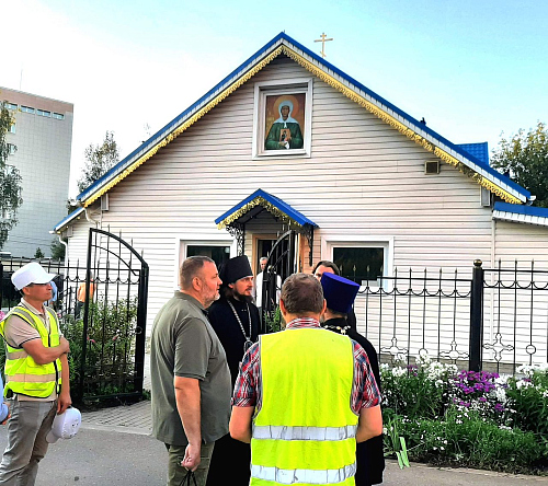 Осмотр строительной площадки храма, знакомство с жизнью прихода прошло в доброжелательной обстановке с надеждой продолжить строительство Храма и укреплять приходскую жизнь.