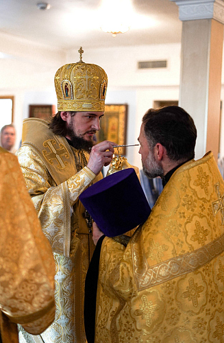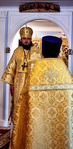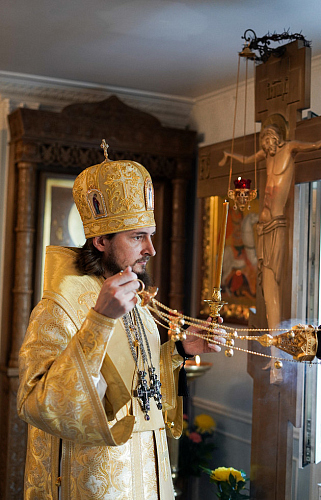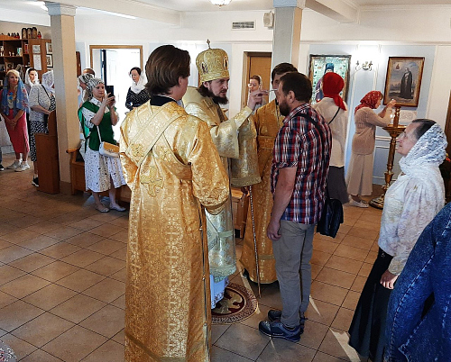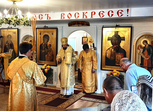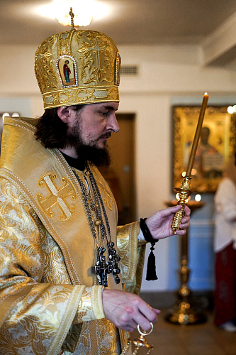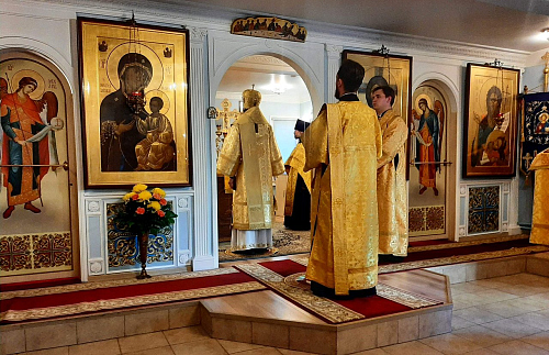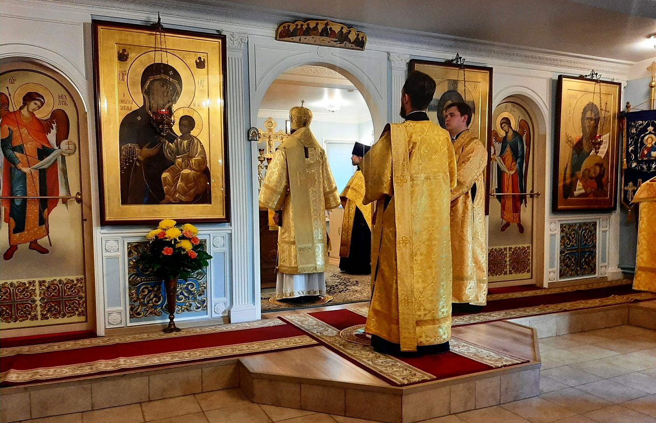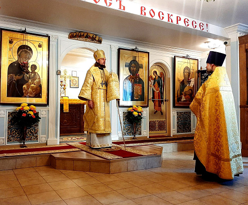 Его Преосвященству сослужили настоятель храма Иверской иконы Божией Матери священник Игорь Краев и диакон Константин Бабак.