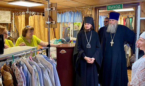 Далее состоялось знакомство Владыки Алексия с территорией храмового комплекса. Он осмотрел алтарь храма великомученика и целителя Пантелеимона, где ведутся благоукрасительные работы, посетил находящиеся на территории храмового комплекса здания службы милосердия, иконописной мастерской "Елеуса" и воскресной школы "Светлая тропинка", ознакомился с историей и жизнью прихода.