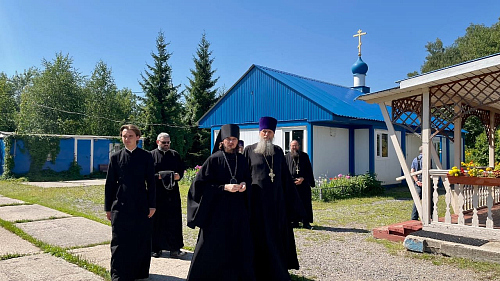 Завершился визит совместным праздничным обедом в трапезной храма. Владыка тепло пообщался с духовенством и мирянами, поблагодарив всех за радушный прием.
